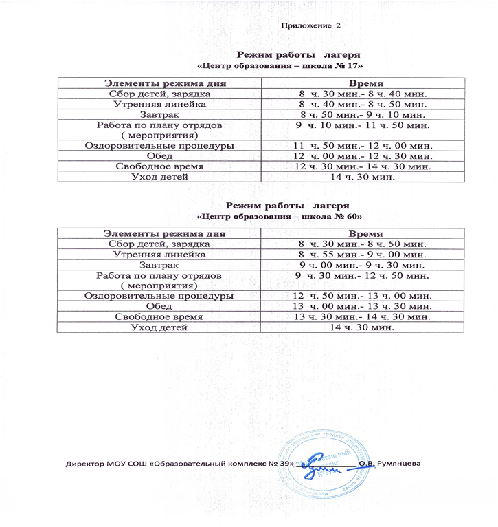 Центр образования -школа №60 Директор лагеря - Колодина А.И.